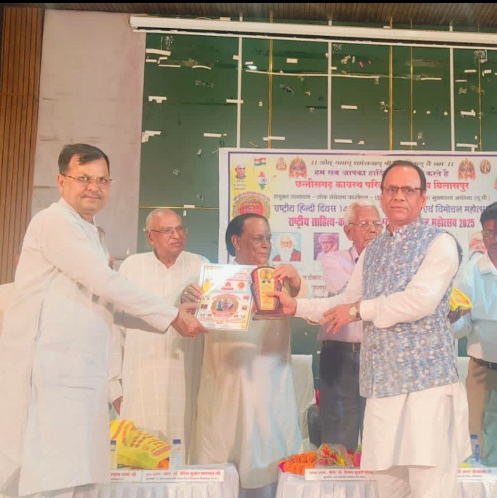 बिलासपुर। हिंदी दिवस के अवसर पर जिले के वरिष्ठ साहित्यकार और समीक्षक, पूर्व आई.एस.एस. रमेश चंद्र श्रीवास्तव को ‘राष्ट्रीय साहित्य शिरोमणि सम्मान-2025’ से सम्मानित किया गया। यह सम्मान लोक संचेतना फाउंडेशन ट्रस्ट भारत और कायस्थ परिवार छत्तीसगढ़ राज्य के संयुक्त तत्वावधान में आयोजित भव्य सम्मान समारोह में प्रदान किया गया।
